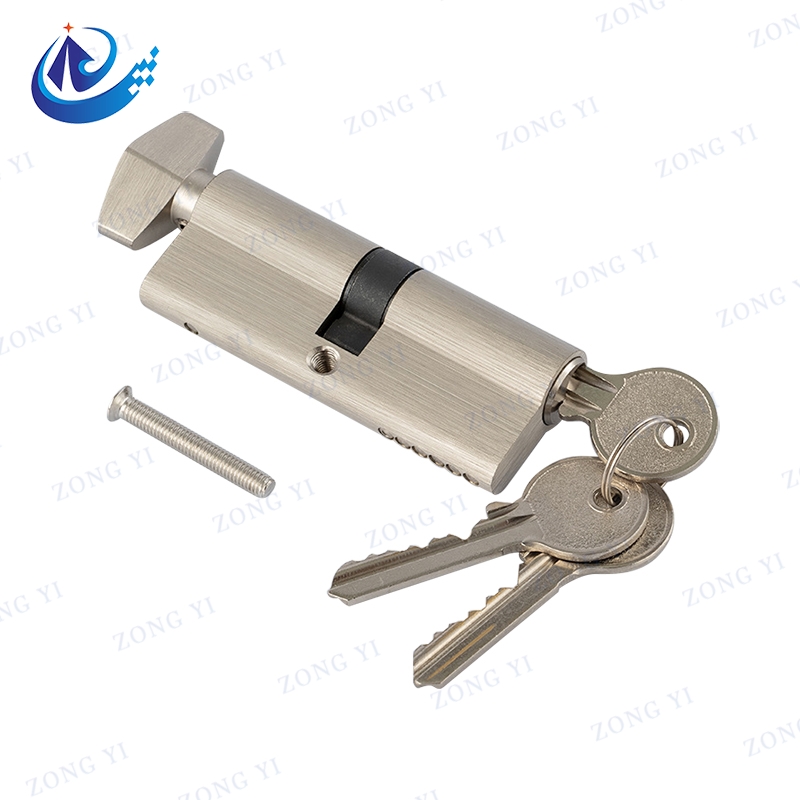 ユーロプロファイルの親指ターン二重シリンダーモタイズブラスキーシリンダーは、磨かれた真鍮仕上げで使用できるか、サテンニッケルでメッキされている、両側または親指のターン、半分、非対称のデザインのいずれかの固体真鍮製ユーロシリンダーです。